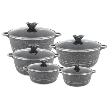 Cookware Set Pots and Pans Factory Customization Non-stick Aluminum and Granite Coating Silicone Lid 8-piece Set Black Metal