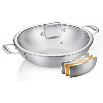 Manufacture Luxury Stainless Steel Triply Kitchen Food Cooking Bottom Honeycomb Shallow Pot Cookware Sets for Kitchen