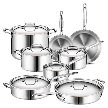 Professional 5-Layer Copper Core Stainless Steel 14pc Cookware Set - Oven Safe & Gold Plated Handles